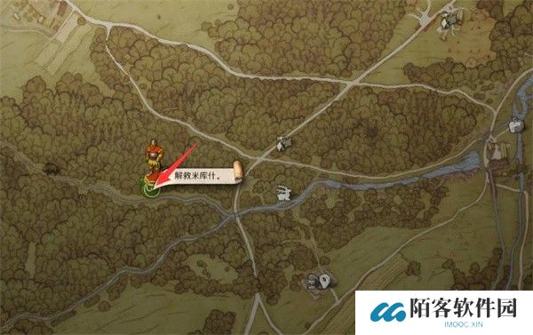 在小路尽头,发现强盗营地,米库什被囚禁在此。