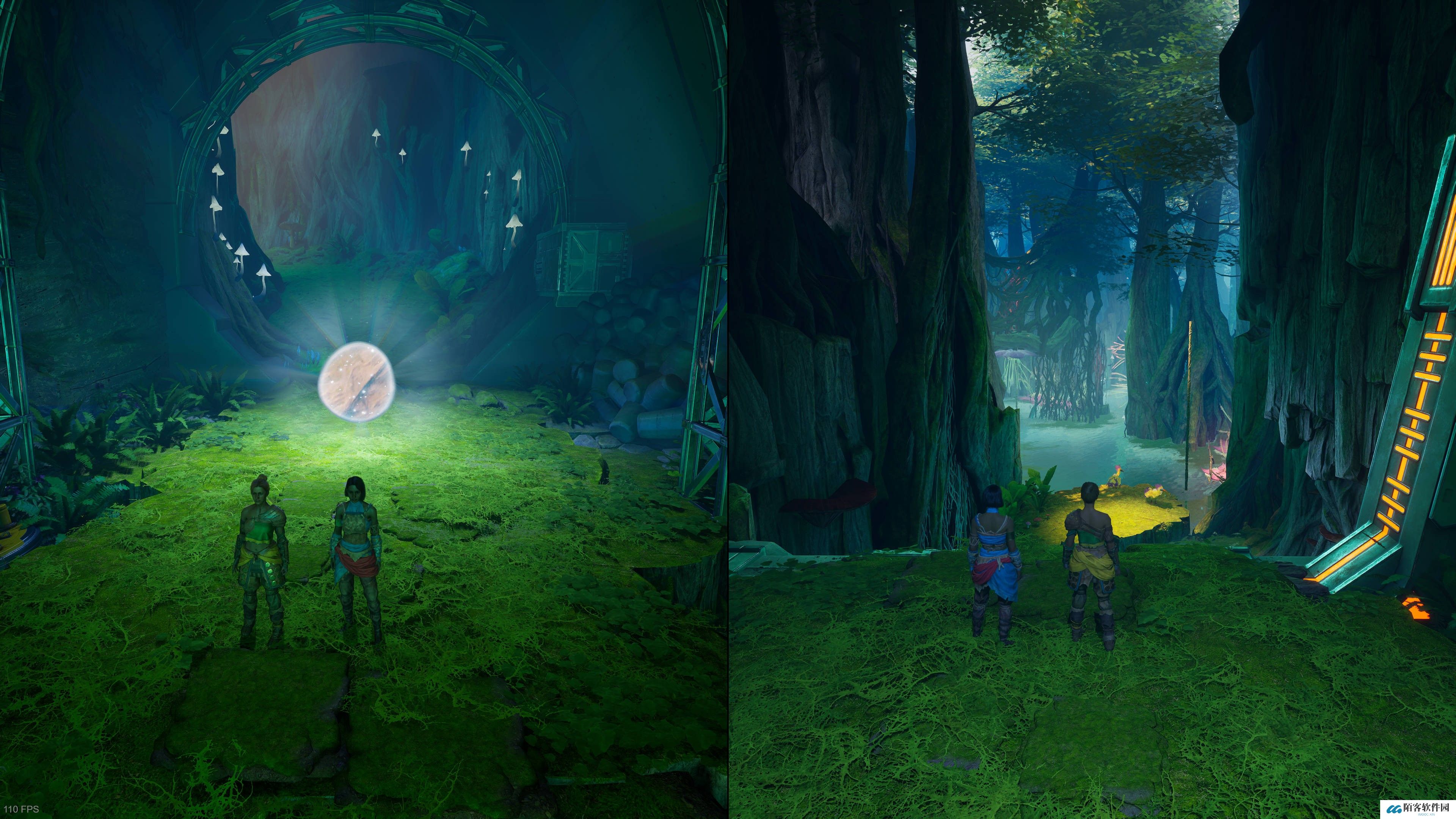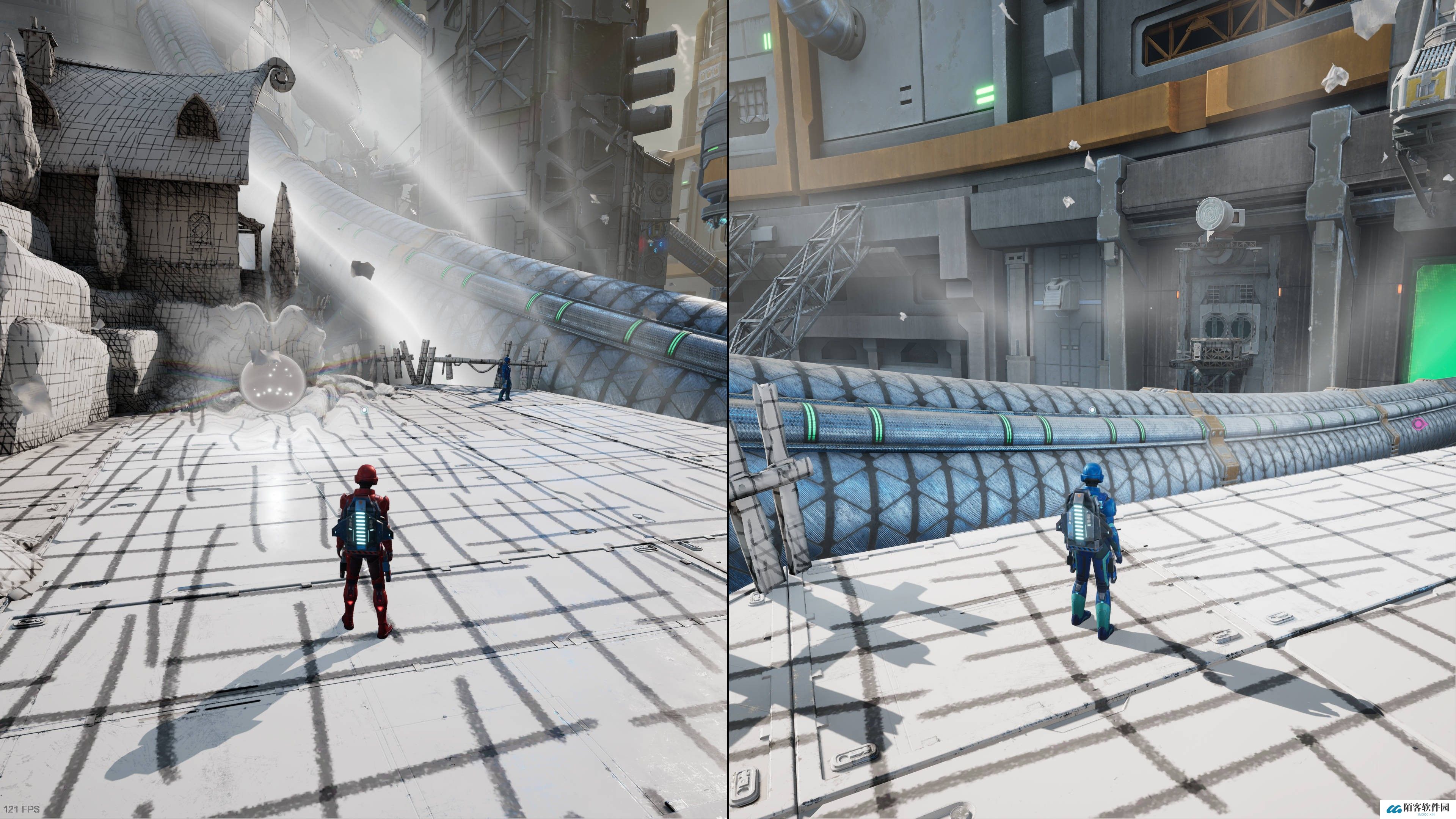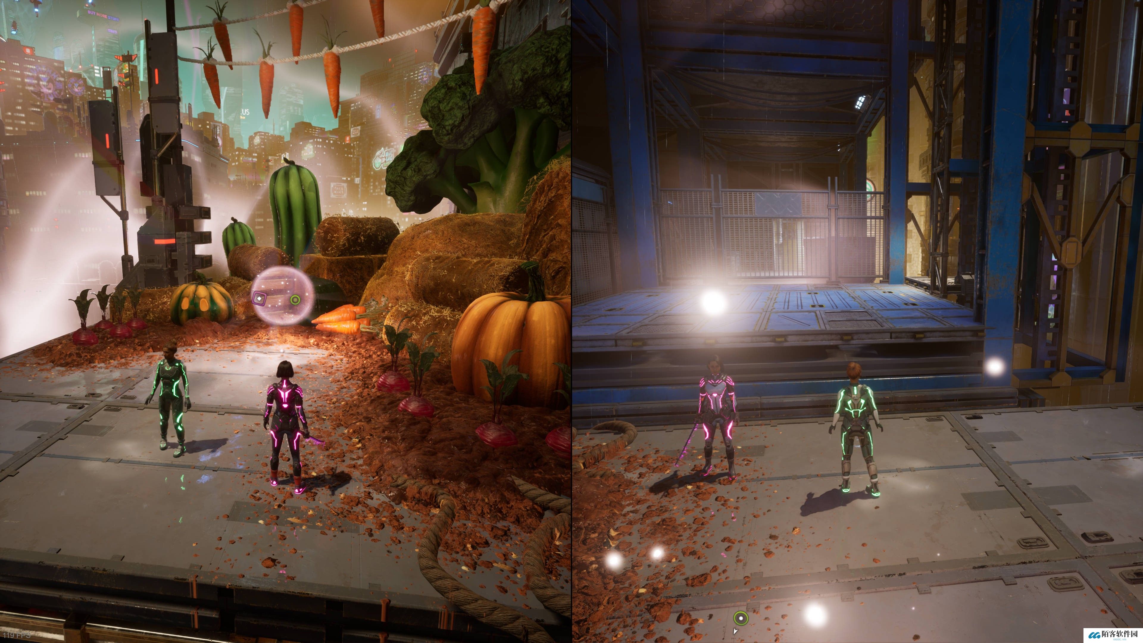 走过机械手移动的平台后,直走有一道需要两位玩家合力解锁的门。开门后跳上四个移动平台,再合力移开挡路的机械手就是支线入口。