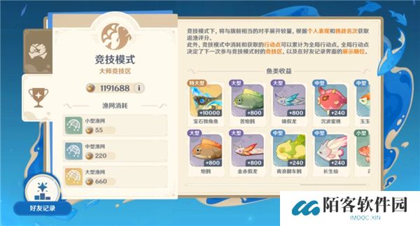 渔场内会有不同的发光鱼类,这些鱼触发不同的增益buff。玩家在捕捞这些鱼时,最好选择有buff增益效果的渔网,这样能帮助提升捕获高分的机会。