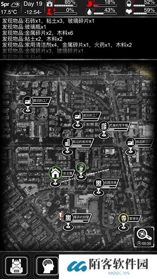 3、第一天刷资源点必出食物:食品店、医院、加油站、首推医院、工厂、五金店、服装店、武器店不要去,没有食物。其它的资源点食物少一些。