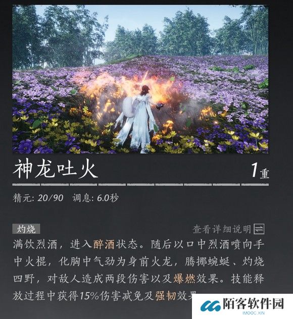 3 神龙吐火/太白醉月:释放过程15%减伤,还送你强韧,除了红光金光无法打断你。神龙吐火4重时,会变成40%减伤,虽然我们也不需要这么高。