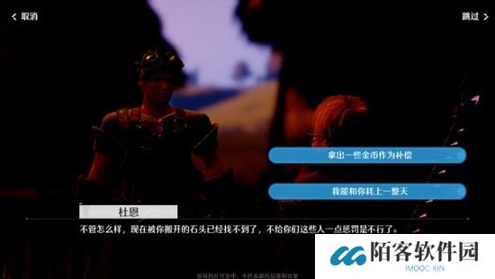 2.捡起杜恩身前石堆中央的石头,与其对话(两种选择均可,对任务流程和结局无影响)。