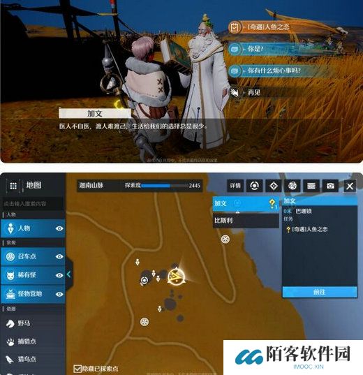 人鱼之恋是诺亚之心游戏中的一个奇遇任务,关于这个任务怎么完成很多玩家都还不清楚。其实人鱼之恋任务的流程很简单,玩家需要先去巴珊港传送阵触发任务,之后去找奇怪的信,然后找到胡妮并和她对话,之后再去和加文、比斯利对话,最后回到小岛找胡妮,人鱼之恋奇遇任务就完成了。