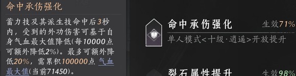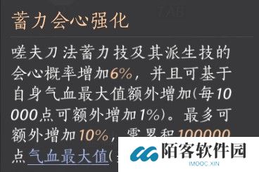 让你可以安心猴戏,上来先放武学技给自己减伤+降低boss伤害。然后打个蓄力枪获得摧鼓buff(蓄力增伤15%),然后八方枪特殊技给boss挂易伤(增伤10%),滚轮切陌刀,释放感知技获得破阵效果如图(目前据说有bug,无法和摧鼓并存,先这么记把,毕竟标准打法,相信后期会修正)获得蓄力增伤30%,然后你就能一刀2w了。