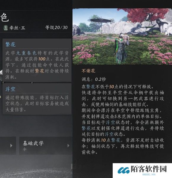 打法简介:非常简单,切伞打个武学技远程控制,然后轻击蓄力起飞,没耐力了落地或者韦陀正法,落地后先放伞的自动攻击,然后切陌刀套盾,然后跑,等有耐力了伞自动打完了,继续起飞循环。。。简单实用。