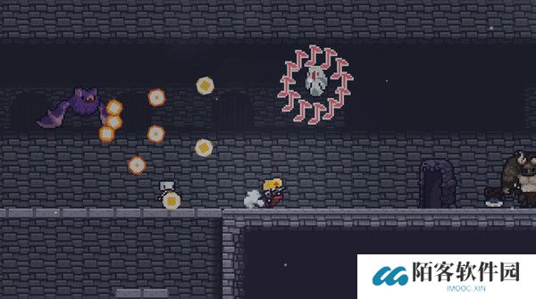 2、然后,地牢方面有着恶魔城一样的地图房间设定,还有贴心的房间传送功能。每次进入都是随机的地图,但是有几处是固定的。每层都有武器商人和食品商人,食品每层只能吃一次获得一个buff。