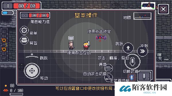 1、游戏的基本操作如下图所示,除了默认操作方式外,玩家也可在设置窗口中更换按钮布局
