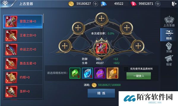 圣器精炼是提升其基础属性的重要方式,玩家可以消耗特定材料或金币进行精炼,提升圣器的精炼等级。