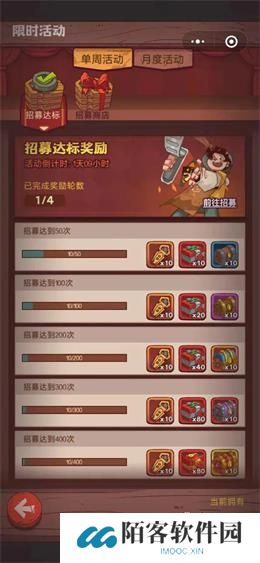 2.每日咸王挑战:在癫癫蛙的考验中,造成上次没提升一个阶段,可以过的1枚招募令奖励。