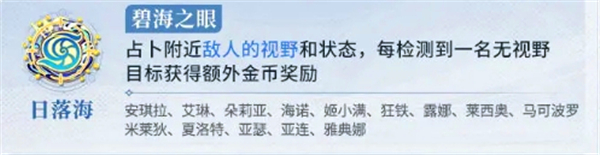 技能效果:占卜附近敌人的视野与状态,每次检测到敌方无视野目标,将获得金币奖励。