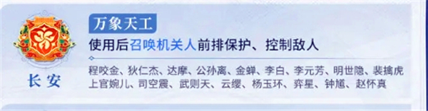 技能效果:使用后,召唤机关人,提供前排保护并控制敌人。