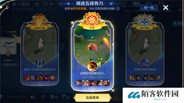 玩家可组队参与5V5匹配或排位赛,并在游戏开始时选择【五排势力】。
