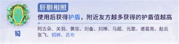 阵营英雄:阿古朵、关羽、黄忠、刘备、刘禅、马超、元歌、诸葛亮、赵云、张飞、貂蝉、吕布。