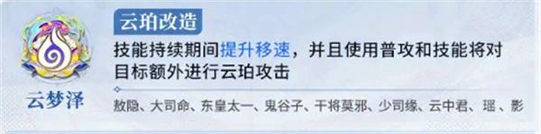 技能效果:技能持续期间,提升移速,普攻和技能额外造成云珀攻击。