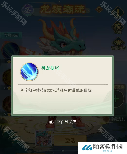 有着无敌盾的存在,所以一星技能龙皮的话,只有普攻单体技能给生命最低目标,无敌盾抵挡伤害,所以显得价值没什么!在然后珍兽的血马,换怒换血,又有不屈一回合杀不死,很克制龙皮!