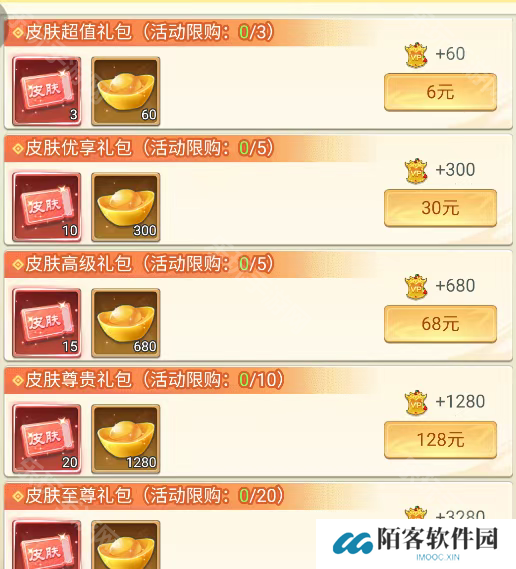 氪金方案:每天6元礼包+3个6元固定礼包+5个30元礼包+4个68元礼包!
