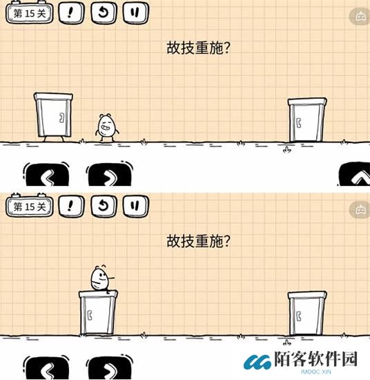 茶叶蛋大冒险镜中世界里面,来到第十五关,游戏开始给出的提示是“故技重施”,和之前的一关非常的相似,但是门会移动,会让很多玩家不知道应该怎么操作,茶叶蛋大冒险镜中世界第十五关怎么