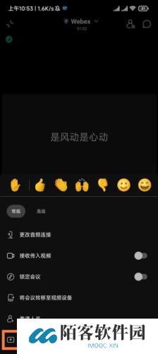 1、打开Webex,在会议界面点击底部的3个点图标。